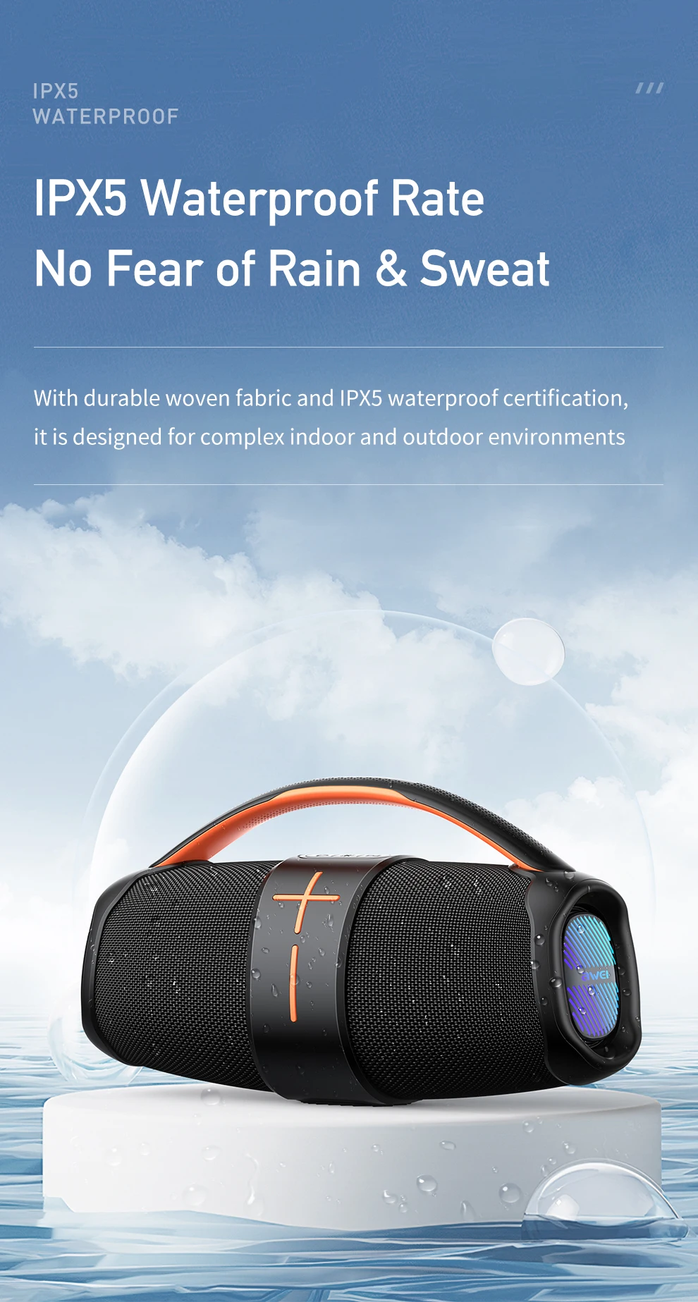 Awei Y887 Waterproof Bluetooth 5.3 Speaker – TWS, Deep Bass, LED Party Lights-Black