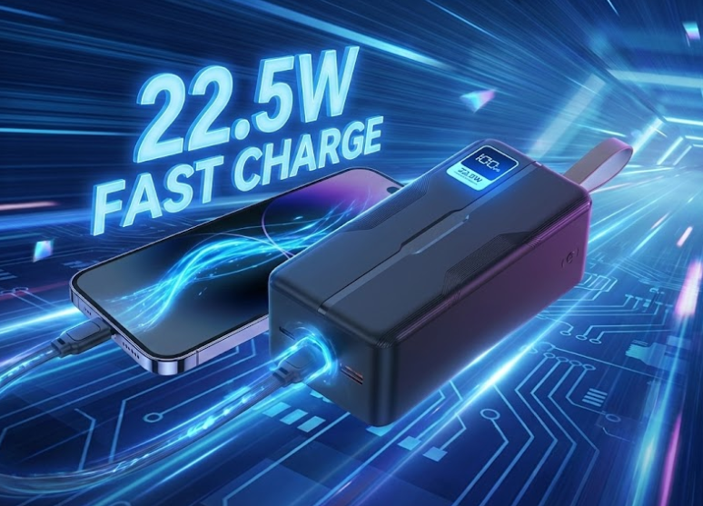 With 22.5 w the power bankΒ can charge your phone upto 65% in about 30 minutes. Also supports Bi-directional fast Charging