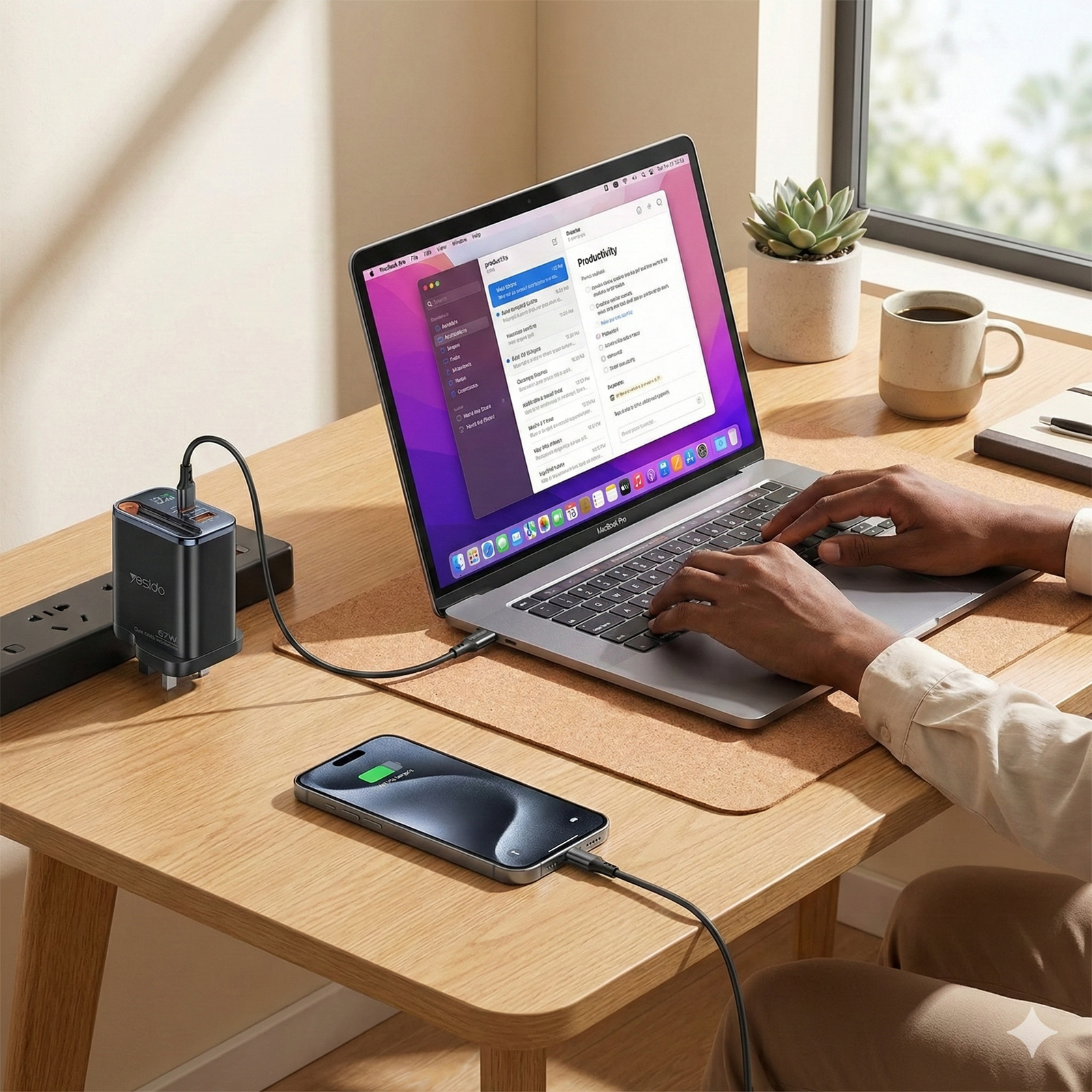 Simplify your workspace and supercharge your travel. The Yesido 67W GaN Charger combines massive laptop-grade power with an innovative built-in cable management system. No more tangled wires, no more bulky bricksβjust pure, fast power.