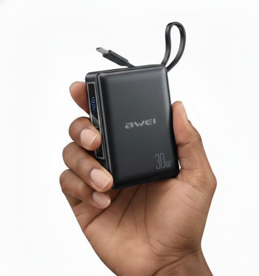 This Awei 30W Mini Power Bank is a powerhouse of convenience, specifically designed for those who need high-speed charging in a pocket-sized form factor.
