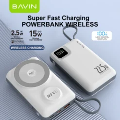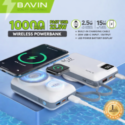 The BAVIN PC1078S Wireless Power Bank is a powerful 2-in-1 charging solution designed for modern smartphones. With a reliable 10,000mAh Li-Polymer battery, ultra-slim portable design, and 22.5W fast charging output, you’ll never worry about running out of battery again — whether you’re at work, traveling, or outdoors.