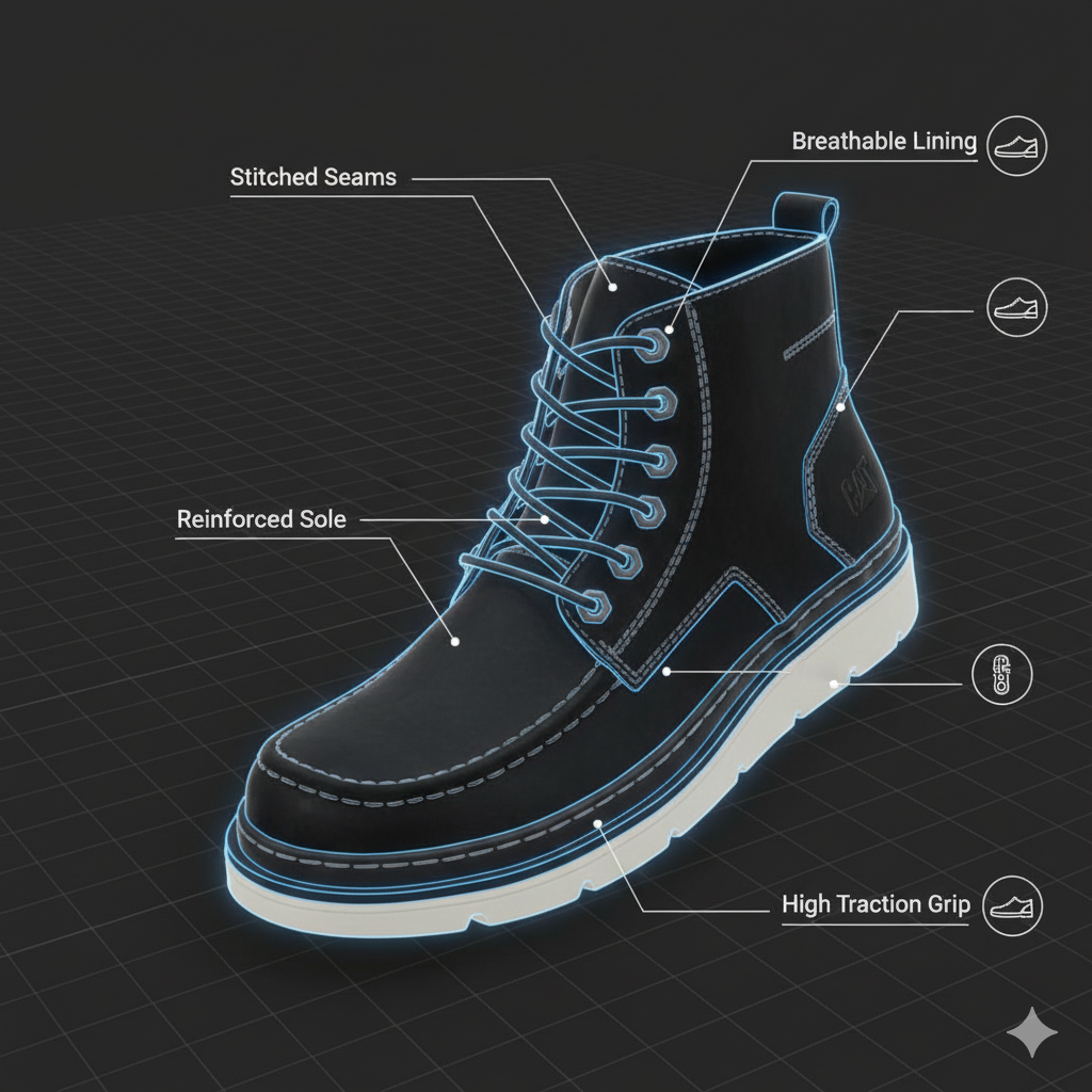 Premium Dante-CAT Black Leather Casual Men’s Boots