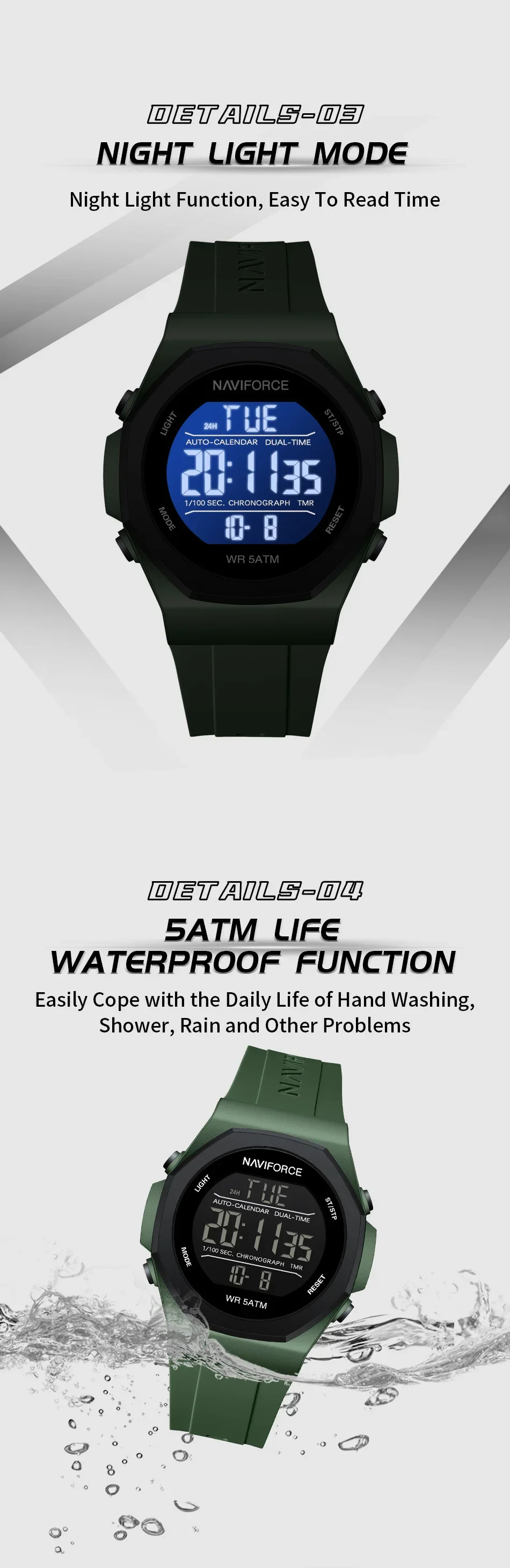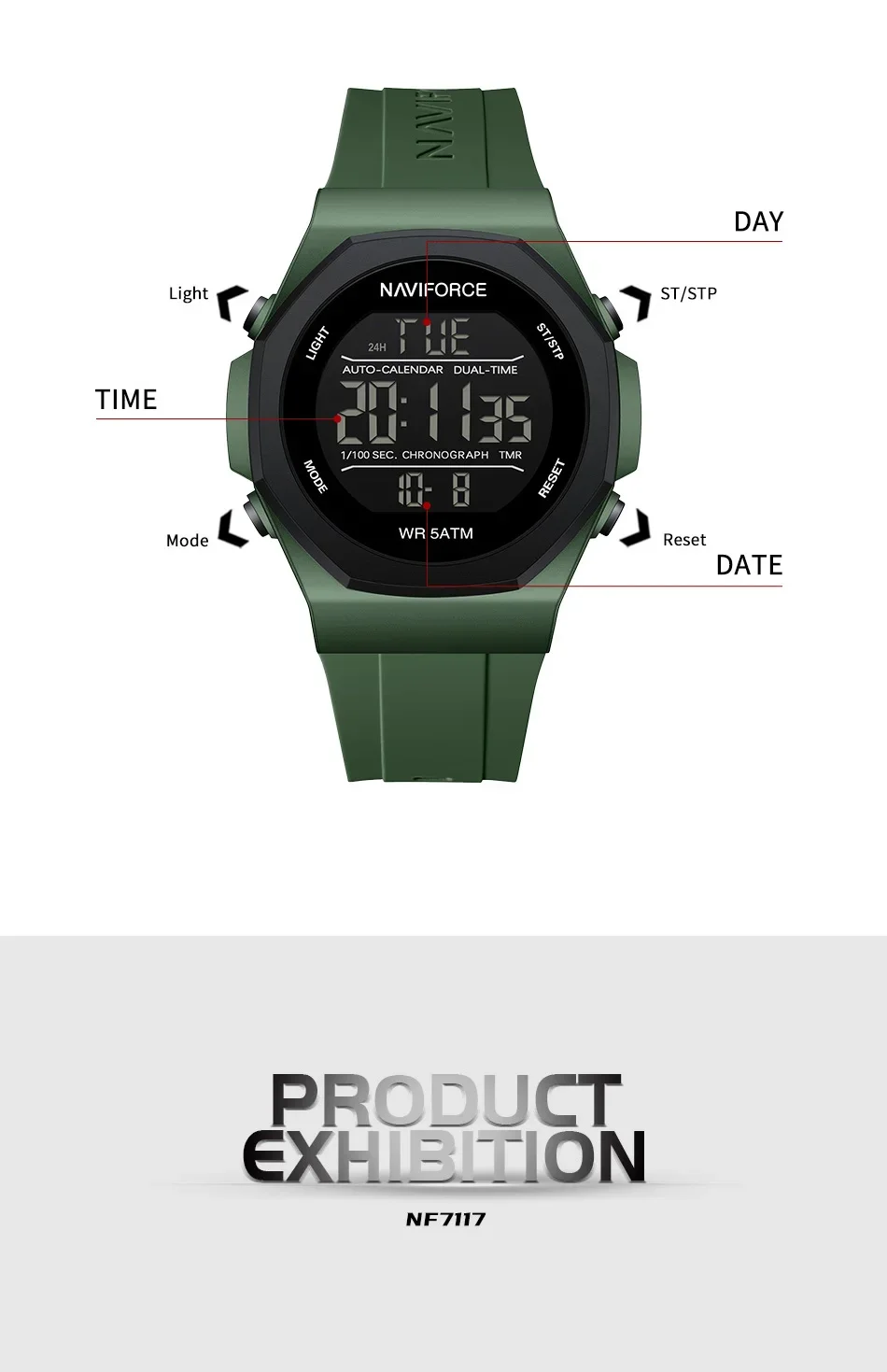 Premium Naviforce NF7117 Waterproof Mens Digital Sports Wrist Watch