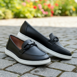 SleekStep Lumina – Women’s Premium Obsidian Black Leather Loafers